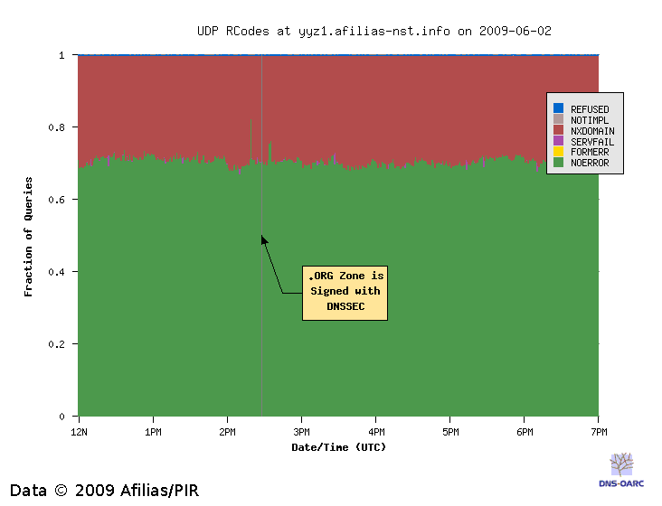 DNSSEC, EDNS and TCP using data from before and after the .ORG zone became signed.