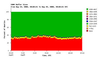 Last week David Conrad of ICANN asked if I could make DSC show the EDNS buffer sizes advertized by clients. This is now available in DSC versions dated after 2008-08-22. Furthermore, the new version is running on the F-root collector nodes.